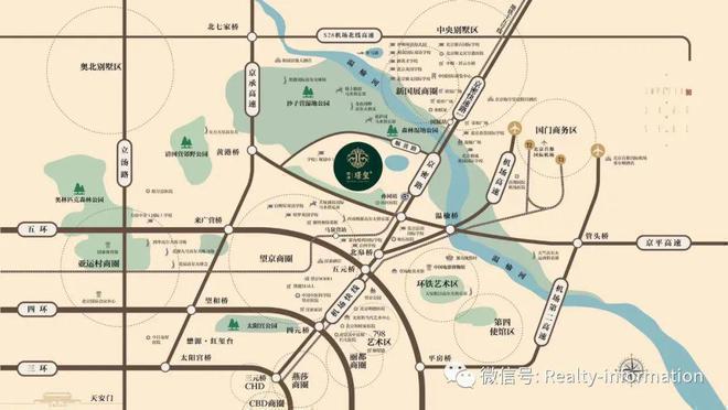 朝阳孙河,东北五环,北京政府首个先规划后建设的地块,城市核心区最佳的低密豪宅用地;首都纯低密住区,70%生态、30%建筑、10万平米中心湖,稀缺有氧生态环境。