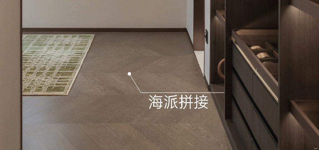 映江润府,承袭海派拼接、海派曲线、海派雕花“三大海派高技”,一抹弧线,勾勒海派的优雅。雕花出风口,见微知著,与时光共赏的品位。卧室地板采用海派鱼骨拼,通过四角斜切的变化,让空间拥有有了灵动的韵律感。