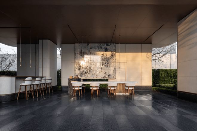 在承袭华润置地“三大海派高技”的基础上,映江润府升级“六大奢享体系”, 奢玉、奢石、奢镜、奢板、奢皮、奢玻,以体系化的运用,细节处的打磨,诠释海派的摩登与矜贵。入户空间臻选白雪公主玉石,采用门牌嵌入的方式,以玉的温润质感,装点归家的门庭礼序。