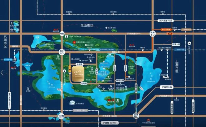 苏州中锐星悦江南售楼处电话☎:✔✔✔项目周边森氧萦绕,拥揽约11670亩白蚬湖,约5600亩的太史淀湿地公园,约4500亩肖甸湖森林公园、约100公顷光明高尔夫俱乐部。