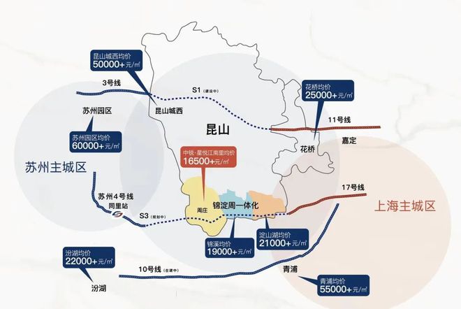 苏州中锐星悦江南售楼处电话☎:✔✔✔项目地处苏昆沪重要交界处,虹桥西向,零距离对接上海,轨交S3号线(规划中)途径于此,东连上海轨交17号线漕盈路站,西接苏州轨交4号线同里站,是环沪地铁沿线值得臻藏的价值高地。