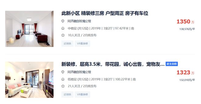 那试想下,漕河泾、张江高薪人群对周边板块的价值辐射作用。漕河泾旁的高品质住宅同济融创玫瑰公馆2018年开盘价约7万/㎡,如今挂牌价已13万+/㎡。