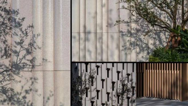 以宜兴陶都当地紫砂泥页岩粗犷为主、匠人花费3天2夜1200°C高温立胚釉烧,打造而成的釉面陶板,在阳光的照射下,显现出如珍珠般的温润质感,增添了一抹独特的韵味。金属格栅、楔形细节及屋顶构架,增加了精致生活的仪式感。每一处细节都透露出对品质的追求和对生活的热爱。