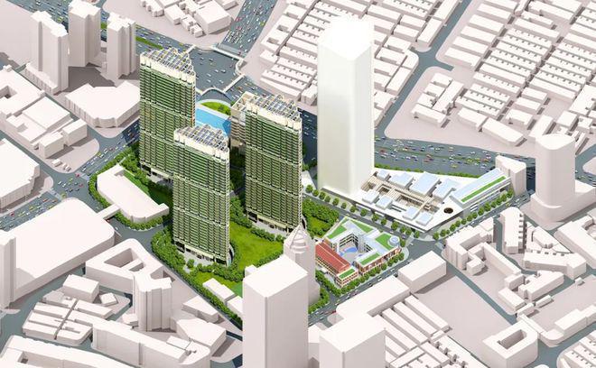 售楼处热线万㎡的住宅以及一座市五中学历史保护建筑、一栋精品酒店,建筑风格是早前流行的Artdeco,是由Portman Architects和日本NIKKEN SEKKEI以及博埃里建筑设计咨询有限公司共同设计。