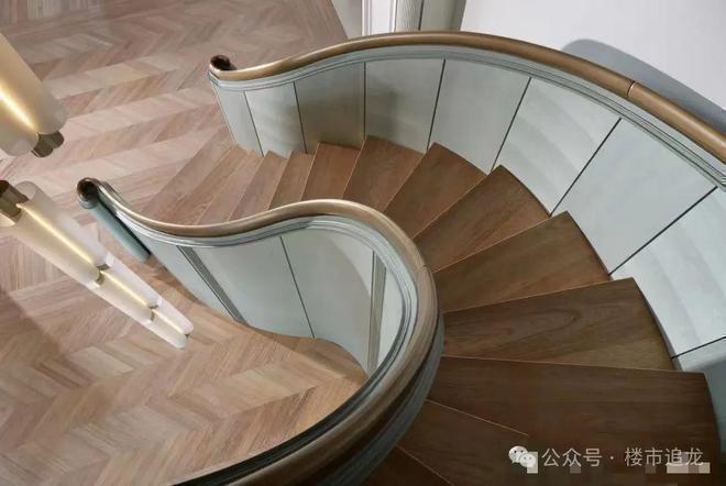 售楼处热线:【电话】这个旋转楼梯是东南亚柚木制作,上面的纯铜门把手是由老师傅纯手工打磨,造价300万。