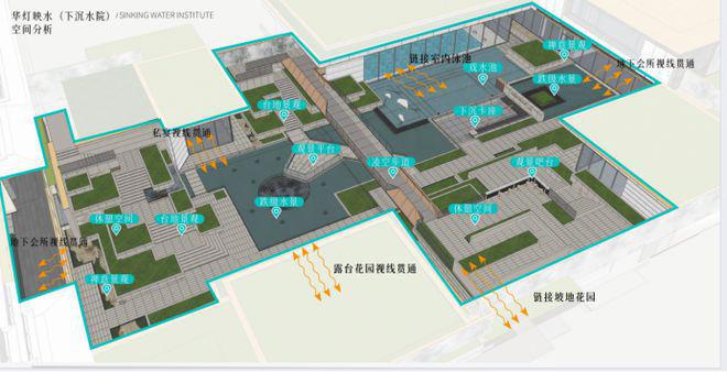 比如,最低处与一层室内标高相比深近9米的下沉水院,结合多层台地设计,将集中式会所功能区变成立体交错的空间,更显互动性与立体感。