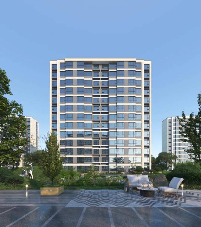 项目也没有选择市面趋同的高低配,而是打造了清一色小高层!这样的配置让项目的天际线统一,楼间距阔绰,每一户都能享受充足的采光和丰富的景观视野!