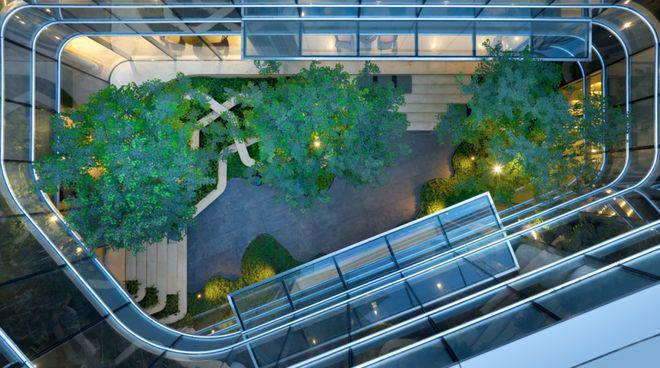 建筑外观采用大面积玻璃、顶层灯塔及约45°设计的建筑体块,一体化视窗设计使其成为城市的艺术品。约270°的寰境设计,让居民能够在家中尽览城市风光。