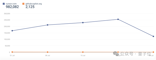 目前,Cursor的流量已经超过了AI代码编辑器界的开山老大哥GitHub Copilot。