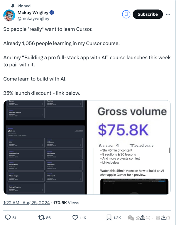 由于围观者甚众,小哥后来还直接现场开班教学,上千人报名了他的Cursor课程。