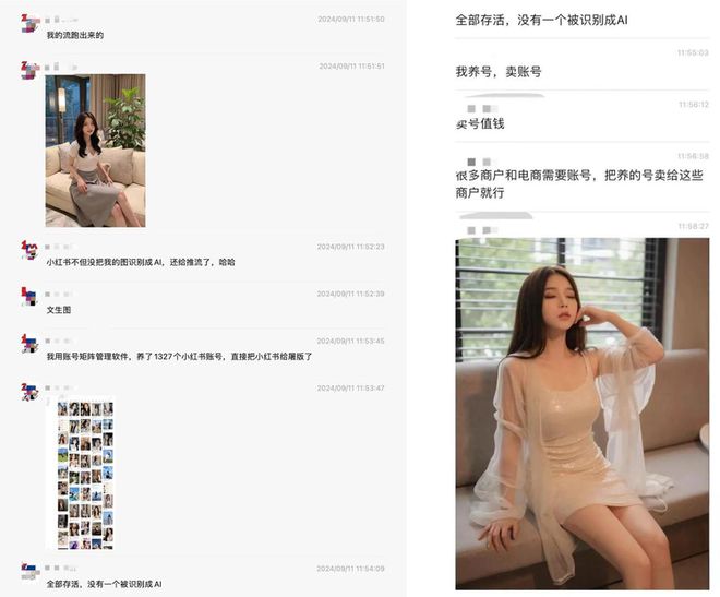 最近一张用AI批量做号的微信截图流传在各个群里,有人自爆用AI在小红书做了一个庞大的虚假账号矩阵,通过售卖账号进行变现。