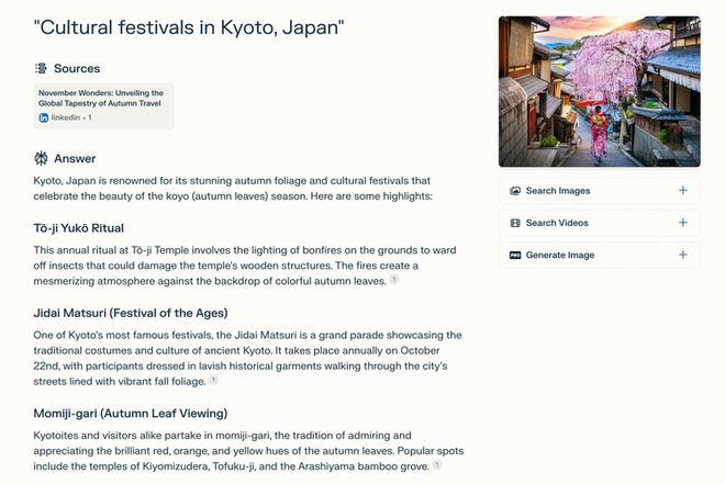 但根据AI内容检测平台GPTZero在今年6月进行的一项研究,Perplexity用户平均搜索三个关键词,就会遇到AI生成的内容。像“日本京都的Bsports必一体育文化节”、“人工智能对医疗行业的影响”、“泰国曼谷必尝街头美食”以及“值得关注的年轻网球选手”等搜索,返回的结果中包含了引用AI生成材料的答案。
